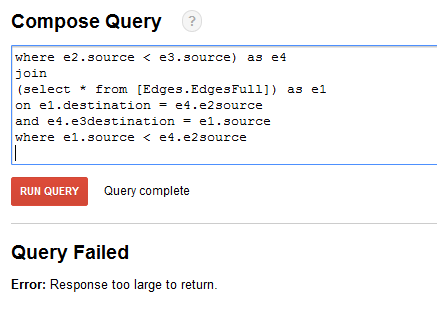 On a small test dataset everything worked OK, but on the full dataset I ran the query and… got an error: