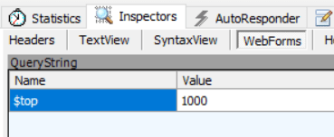 It can be quite difficult to work out what’s going on in a call like this, so with the highlighted row in the screenshot above selected you can go to the Inspectors tab and then the WebForms sub-tab, and it will show the different query options used: